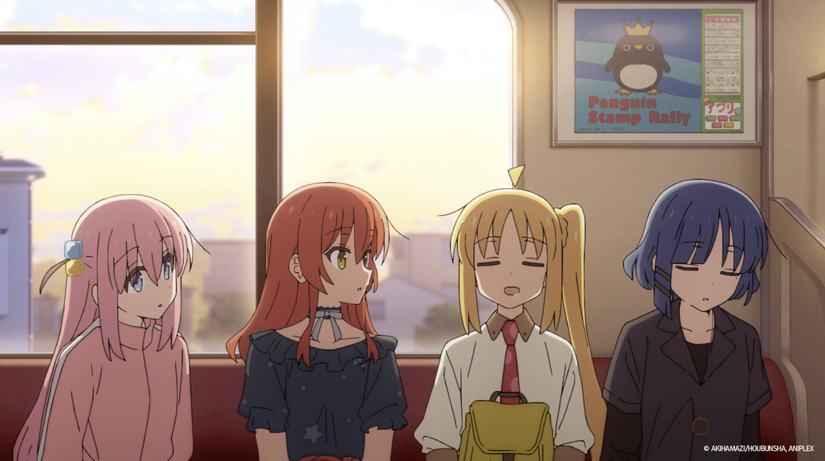 바닷가에서 놀고 집으로 돌아가는 기차 안에서 나란이 앉은 결속밴드 봇치 더 록! 후편 에피소드 1 여름 방학의 추억 -!